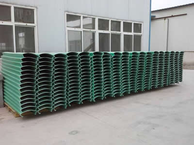 玻璃鋼吸音板 頂部折角聲屏障是由鍍鋅板或者鋁板做成的,一般具有吸聲效果好,自重輕,使用時間可達